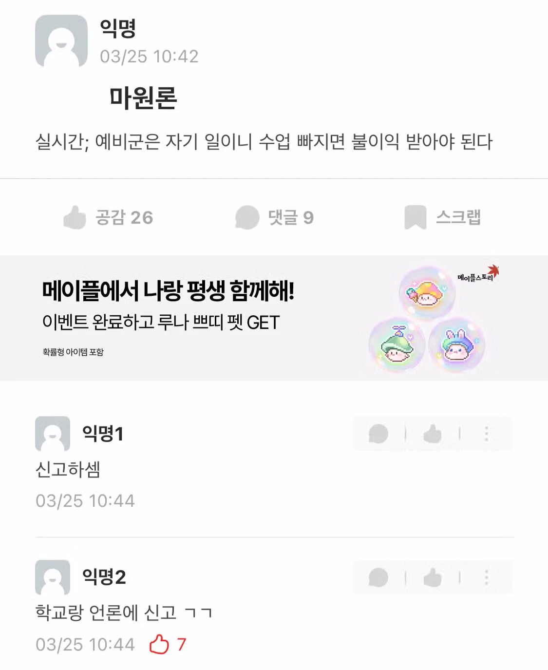 아직도 예비군 불이익 주는 대학교ㄷㄷㄷㄷ