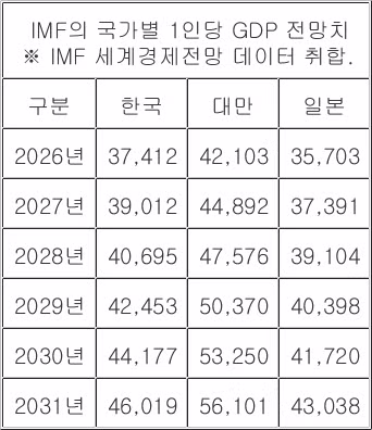IMF의 경고…"5년 뒤 韓 1인당 GDP, 대만에 1만달러 뒤져"