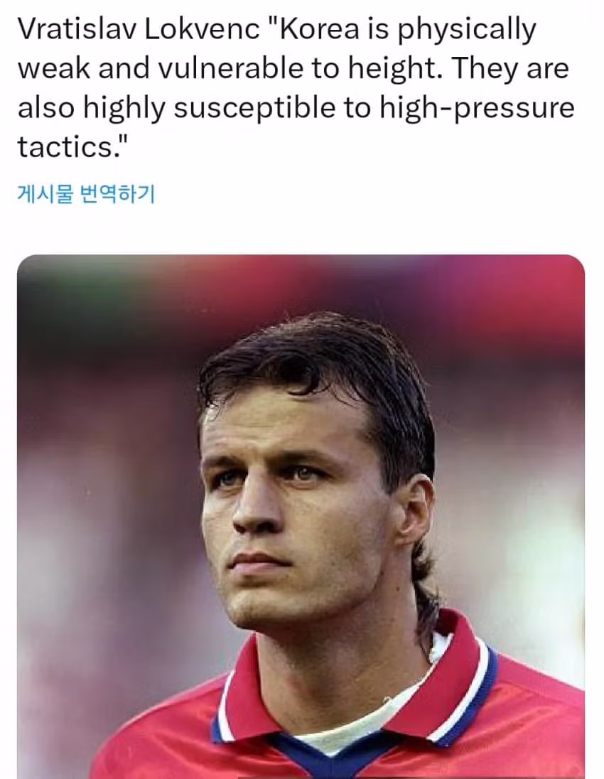 체코 축구 레전드 "한국은 피지컬로 패면 된다"