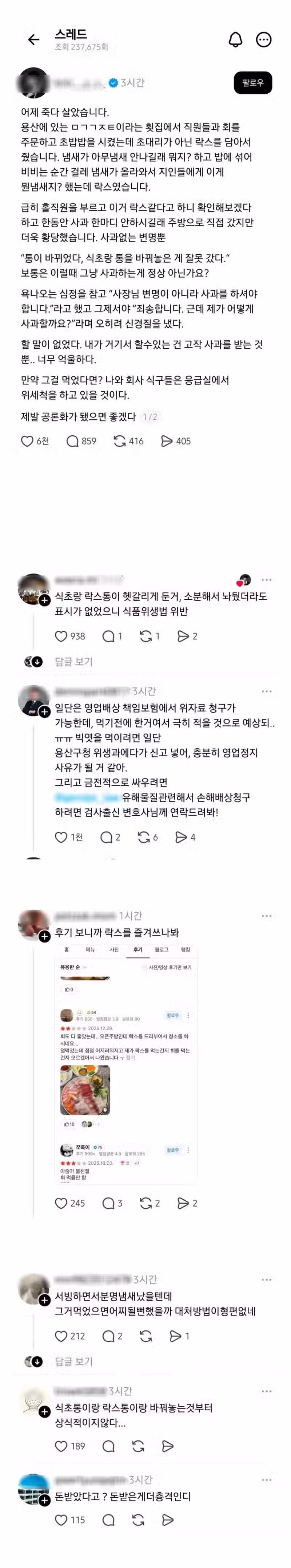 얼마 전 락스 초대리(식초) 나온 스시집 결말