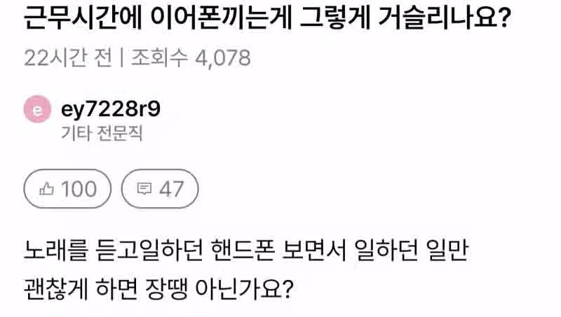 근무시간에 이어폰끼는게 문제임?