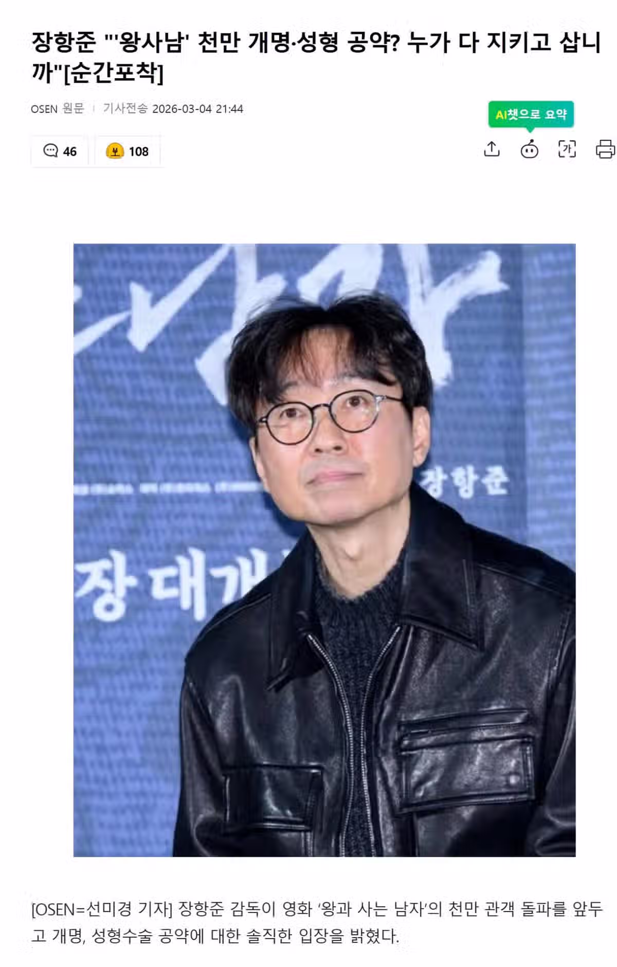 정보/소식 장항준 "'왕사남' 천만 개명·성형 공약? 누가 다 지키고 삽니까"