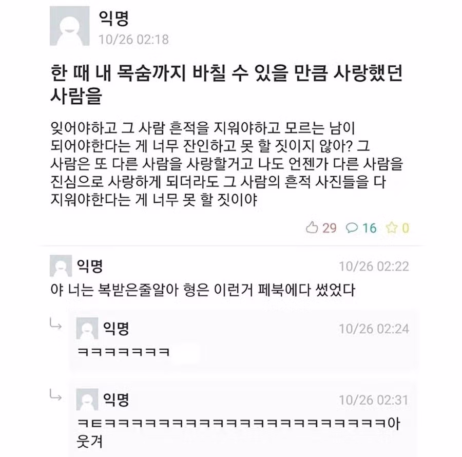 한 때 내 목숨까지 바칠 수 있을만큼 사랑했던 사람을