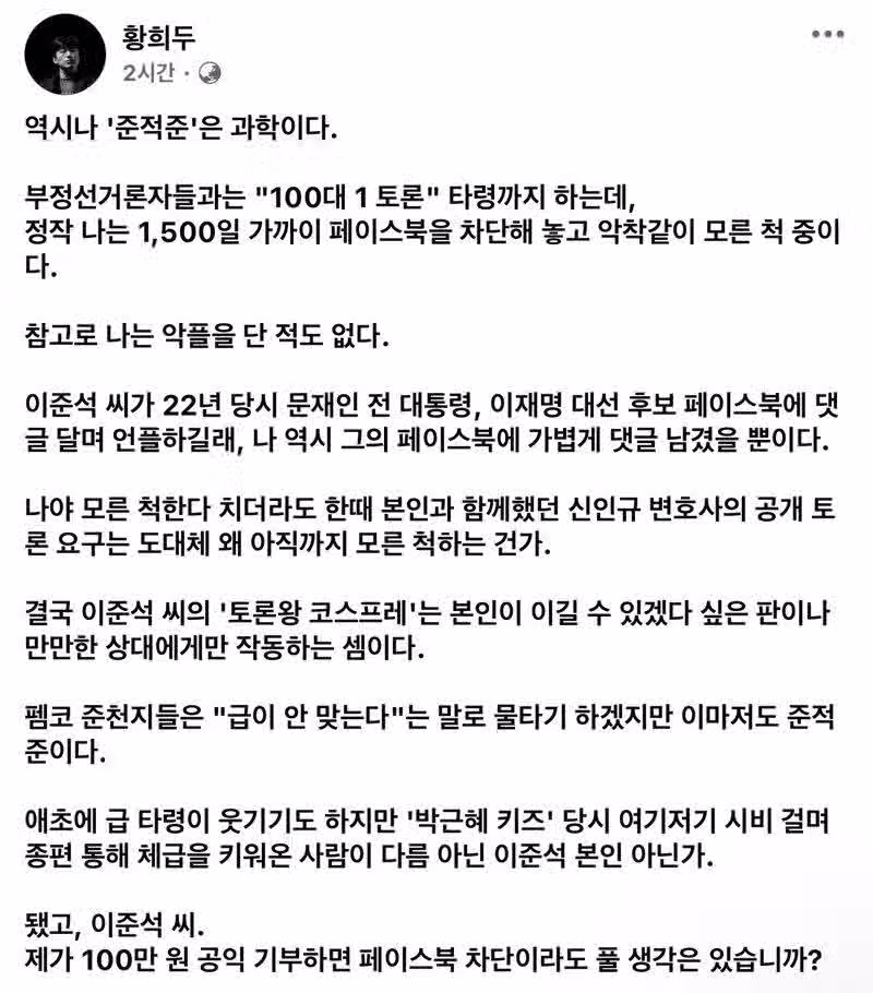 황희두 SNS 역시나 '준적준'은 과학이다