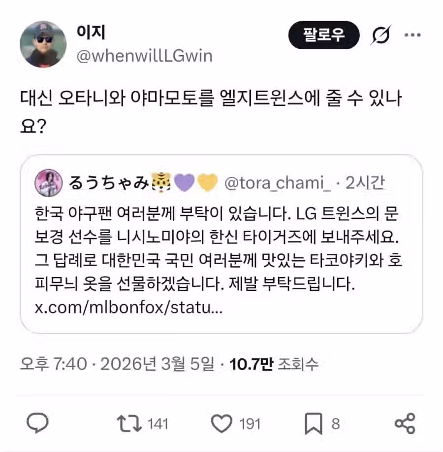 일본인 : 오타니와 야마모토를 줄테니 문보경을 달라