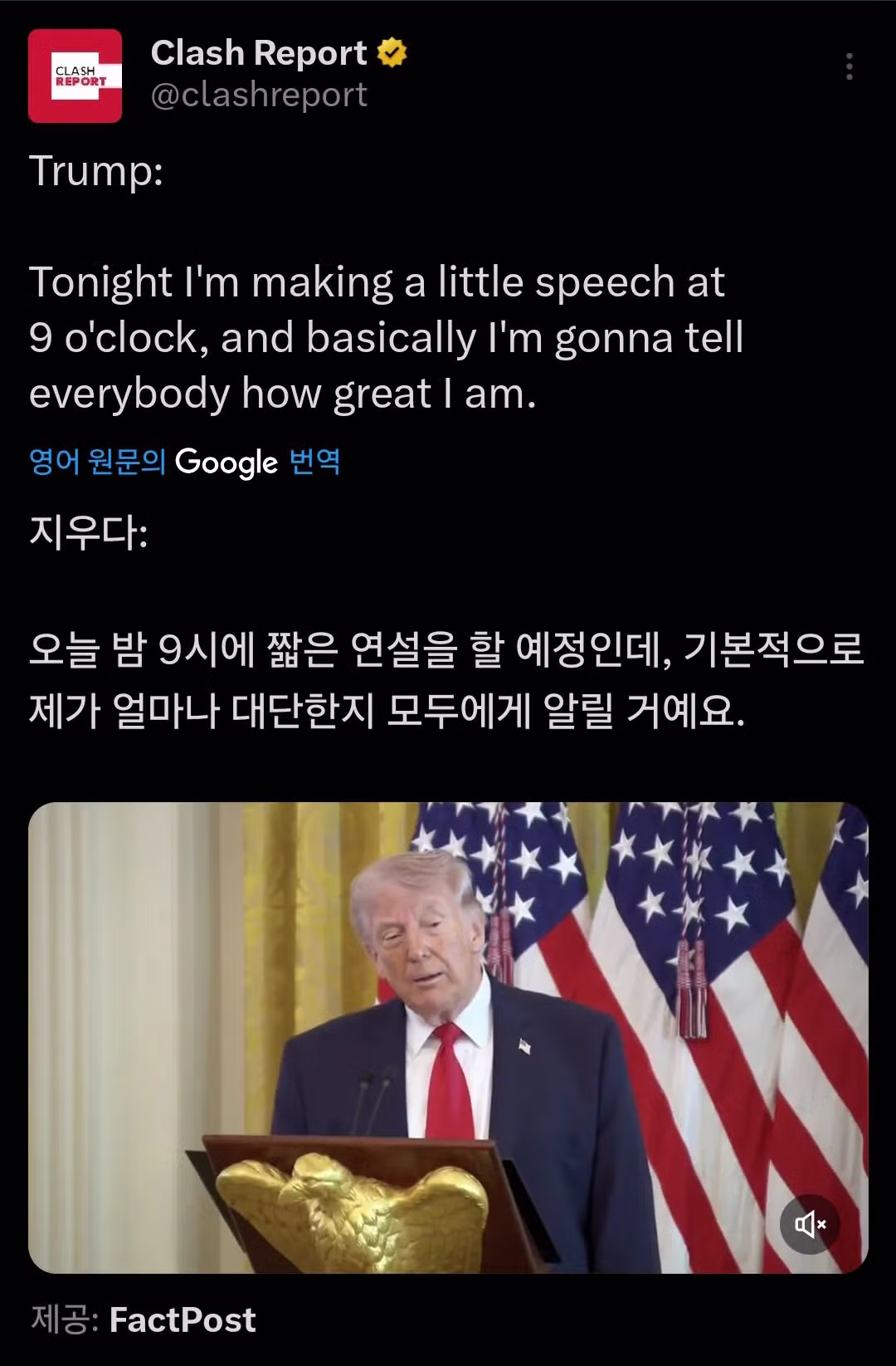 트럼프 "나의 대단함을 오늘 연설에서 알릴 것"