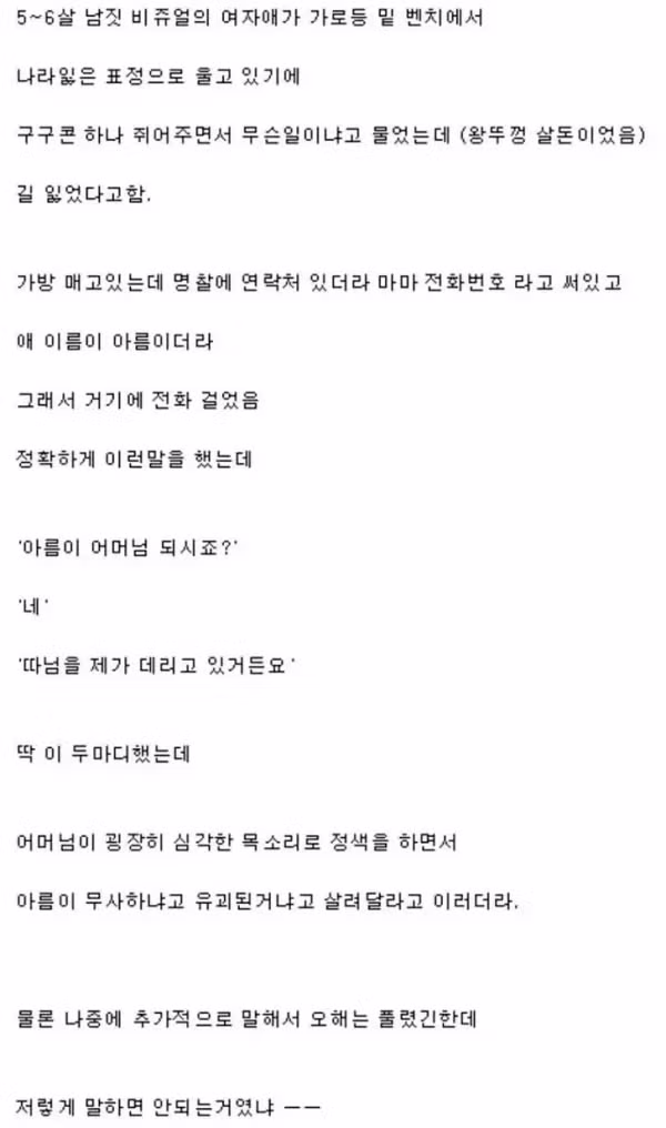 "아름이 어머님 되시죠? 따님을 제가 데리고 있거든요."jpg