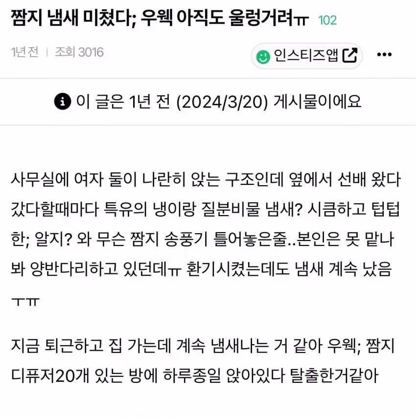 짬지 냄새 미쳤다 우웩