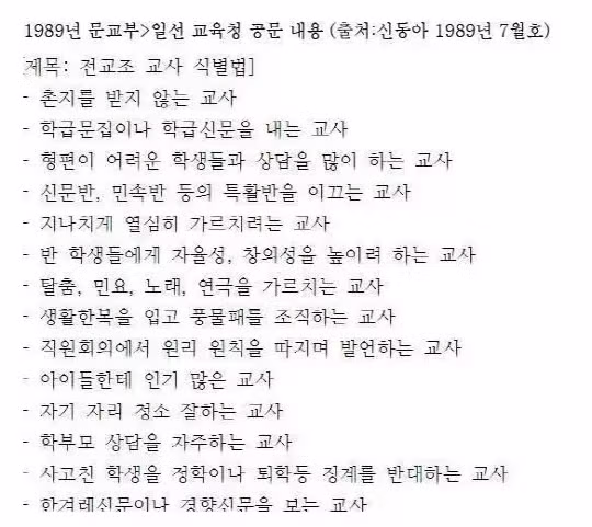1989년 교육청에서 보낸 전교조 교사 식별법 공문
