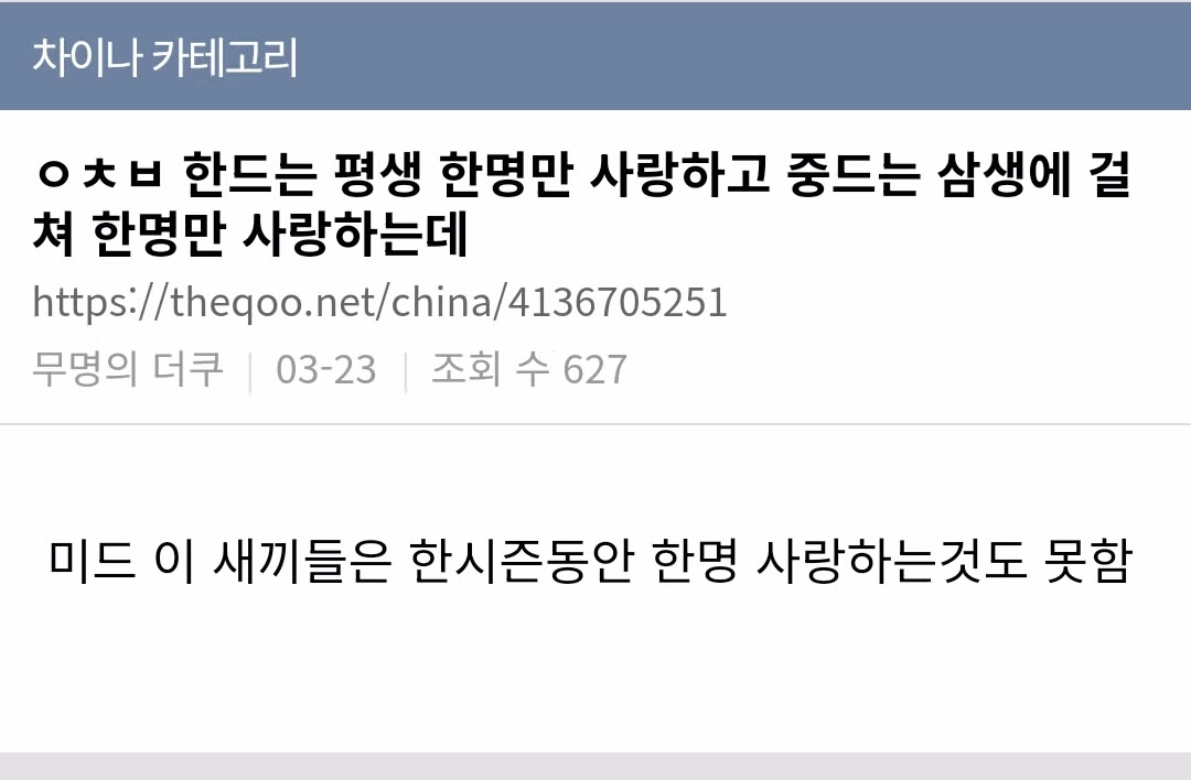 한드는 평생 한명만 사랑하고 중드는 삼생에 걸쳐 한명만 사랑하는데