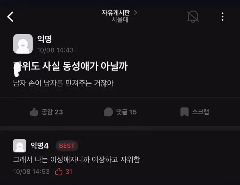 ㅈㅇ도 사실은 동성애가 아닐까?