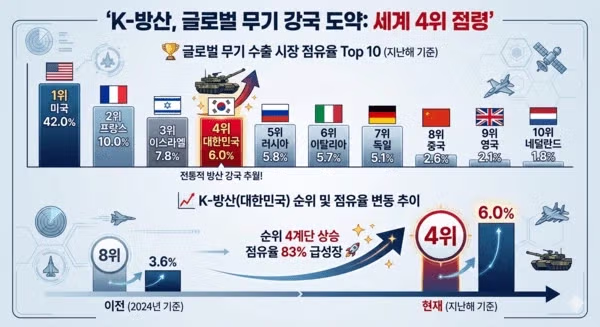 '글로벌 4대 강국' 첫발 뗐다..K-방산 '무기 수출' 4위 등극