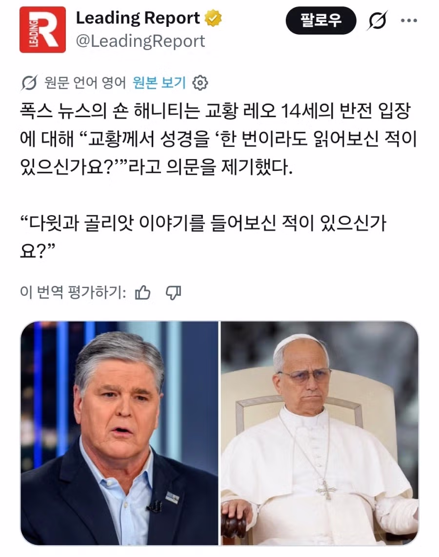 폭스뉴스 "교황 성경은 읽어봤나 의문"ㅋㅋㅋ