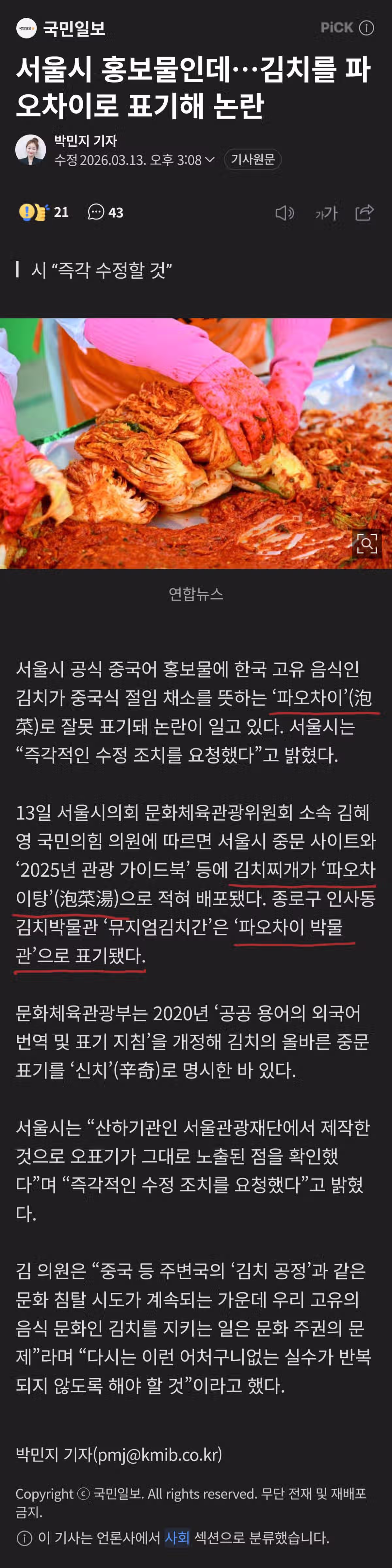 서울시 "김치"파오차이로 표기 (35