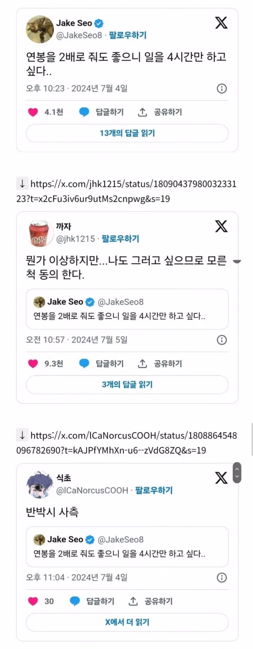 연봉을 2배로 줘도 좋으니 일을 4시간만 하고 싶다