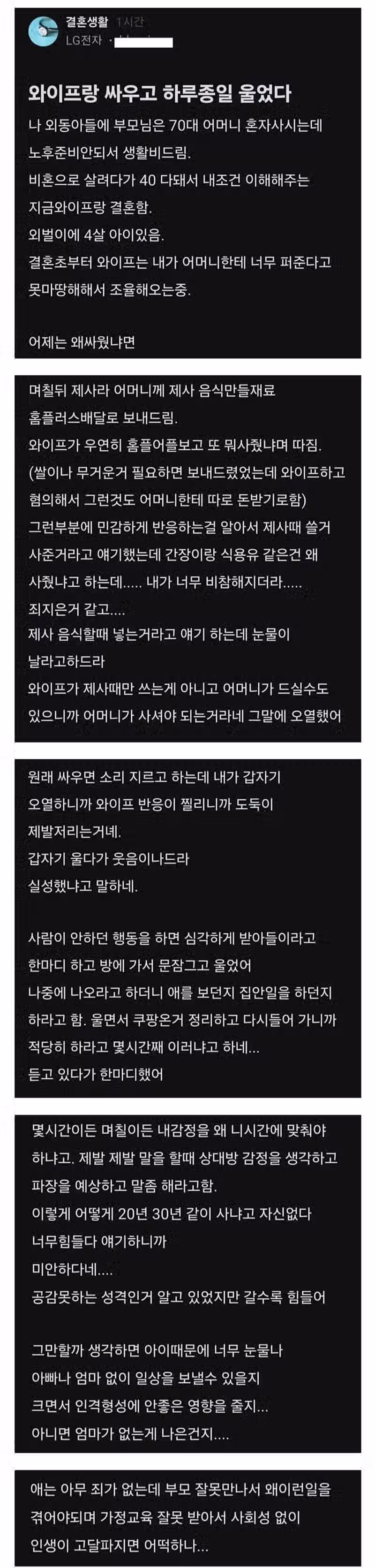 블라인드)와이프랑 싸우고 하루종일 울었다