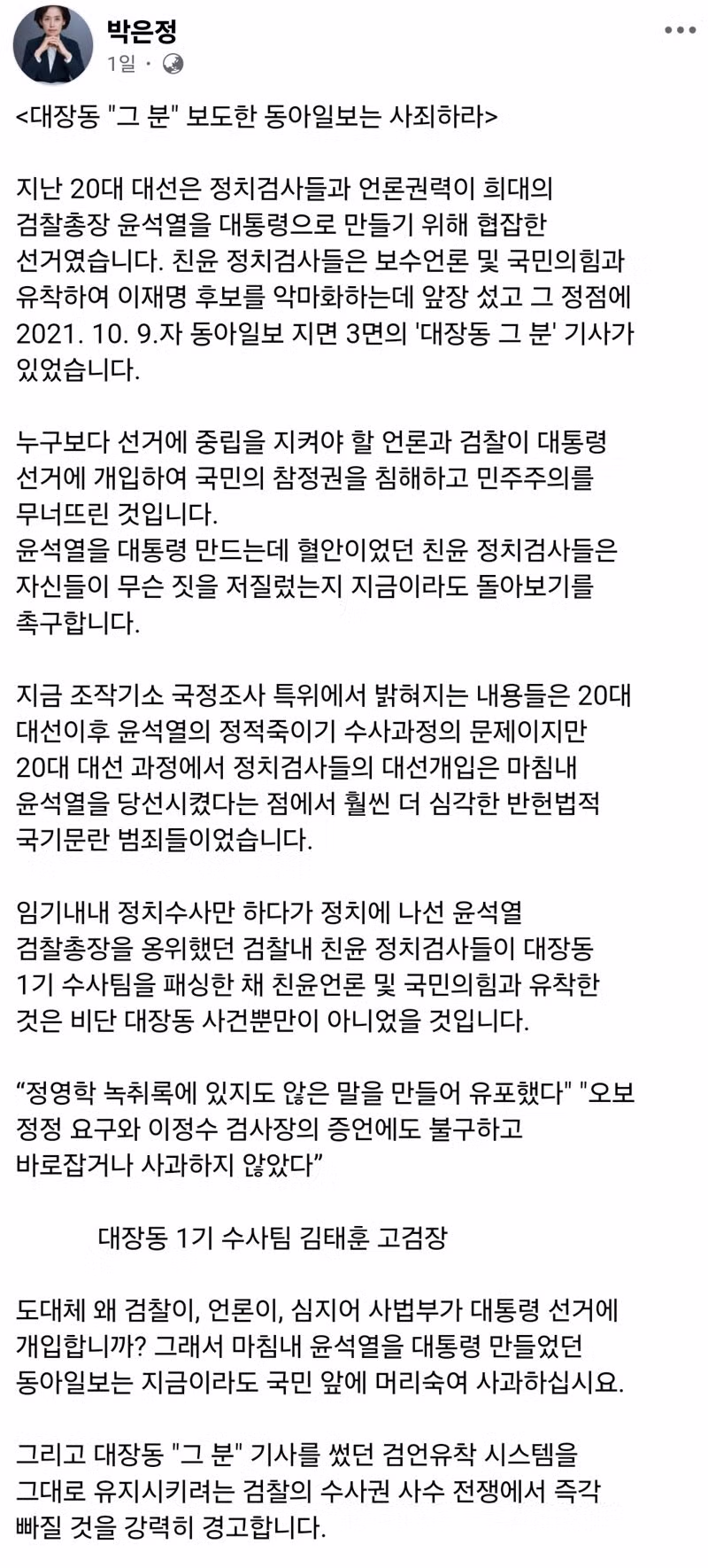 박은정의 동아일보 사죄 요구 ㄷㄷㄷㄷㄷㄷㄷㄷ