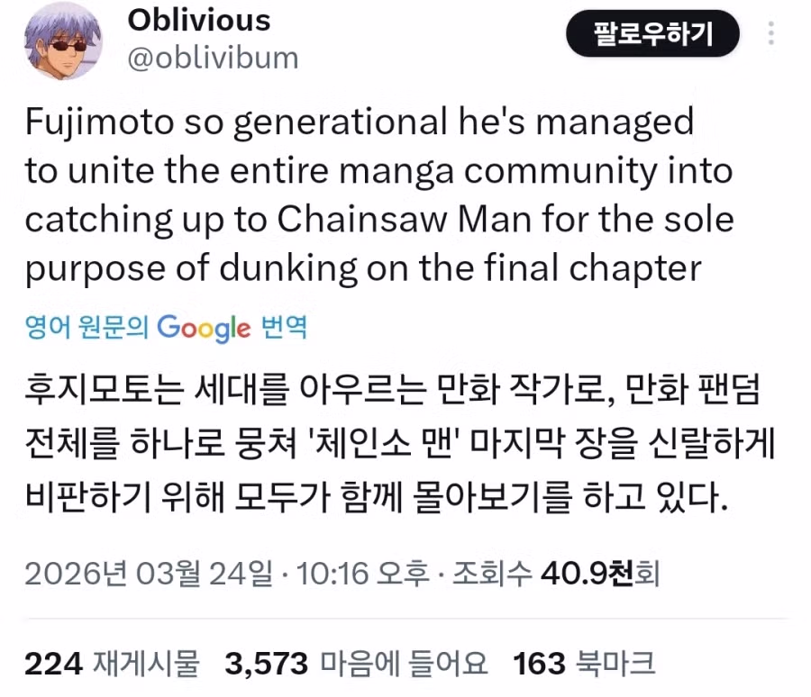 체인소맨) 현재 전세계인들의 결말 반응