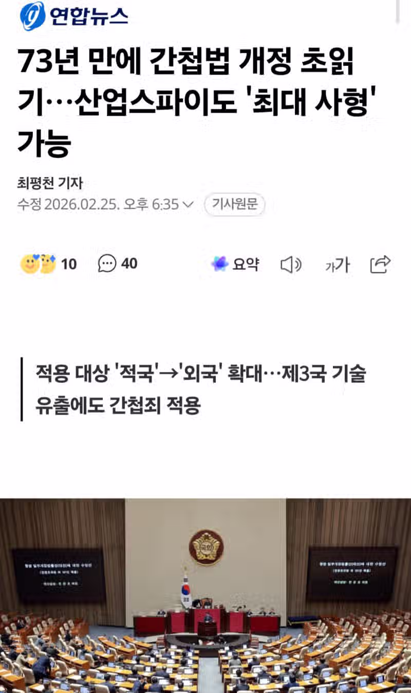 73년 만에 간첩법 개정 초읽기…산업스파이도 '최대 사형' 가능.news