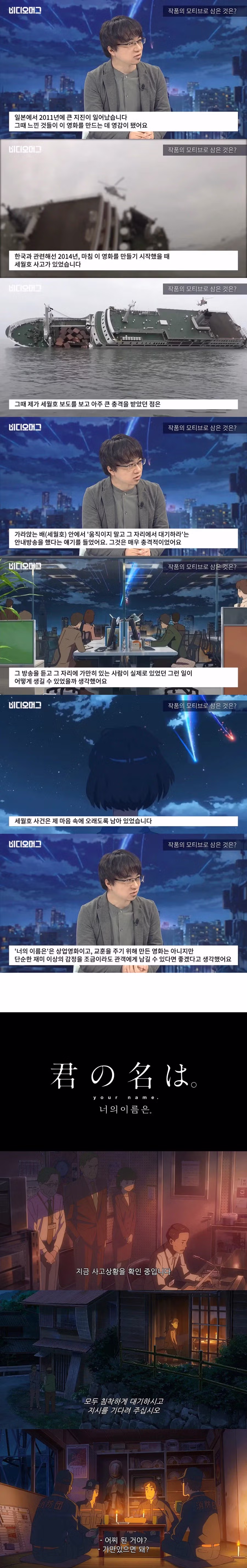 세월호를 모티브로 썼다는 너의 이름은 제작자