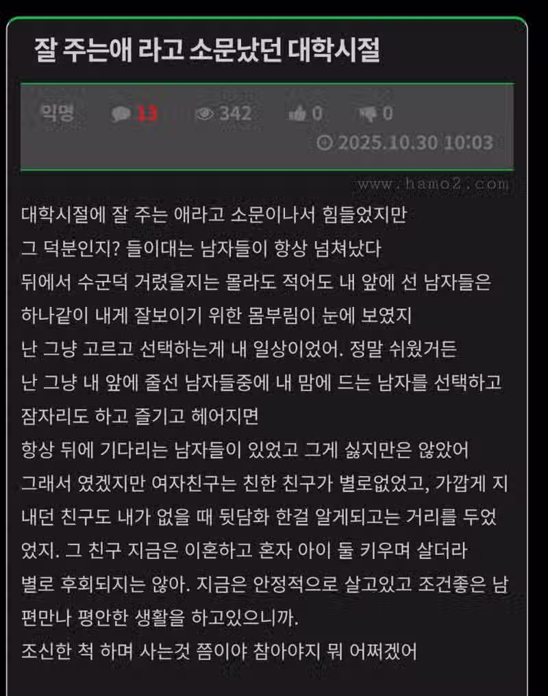 잘 주는애라고 소문났던 대학시절.