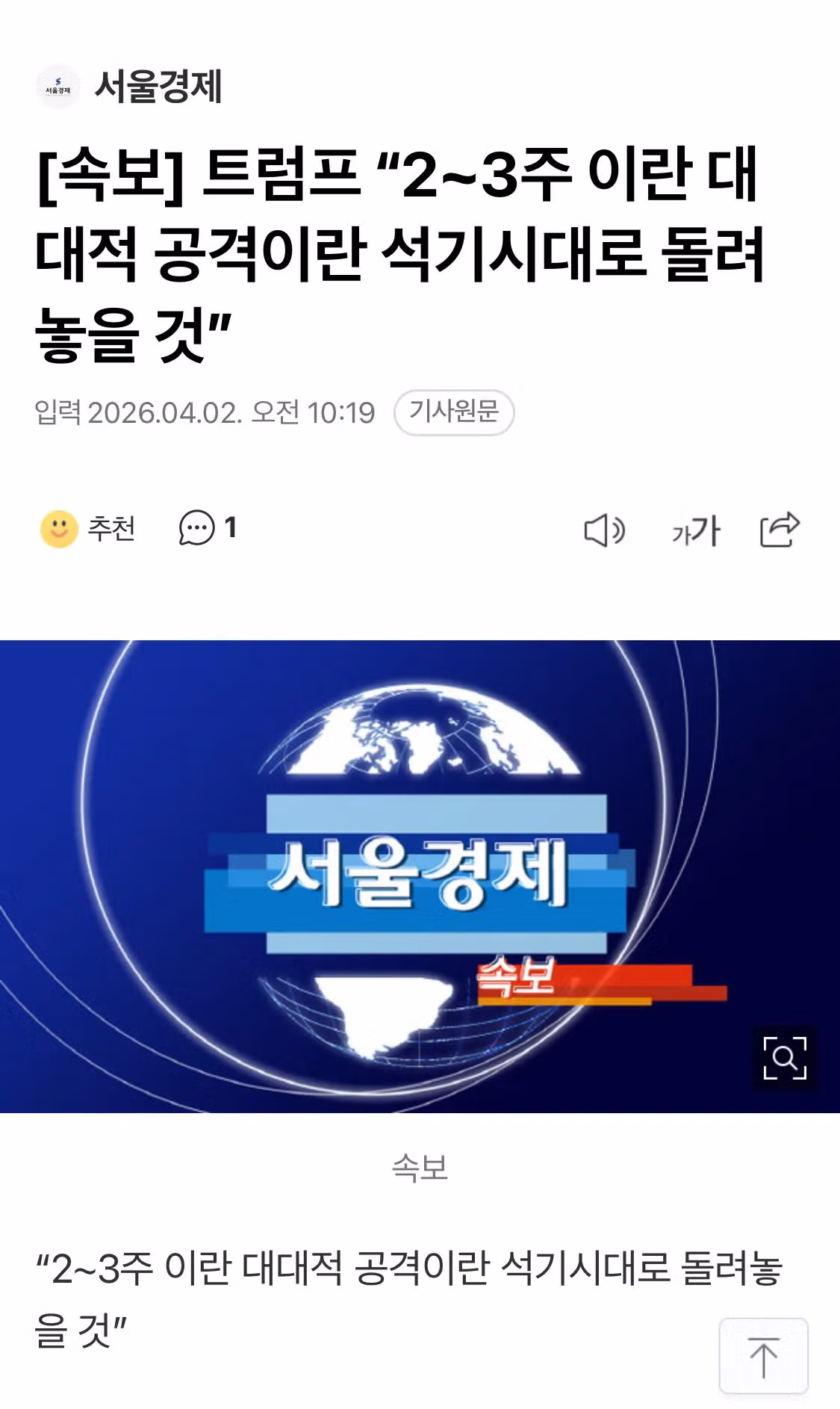 속보) 트럼프, 이란 석기시대로 돌려놓을 것