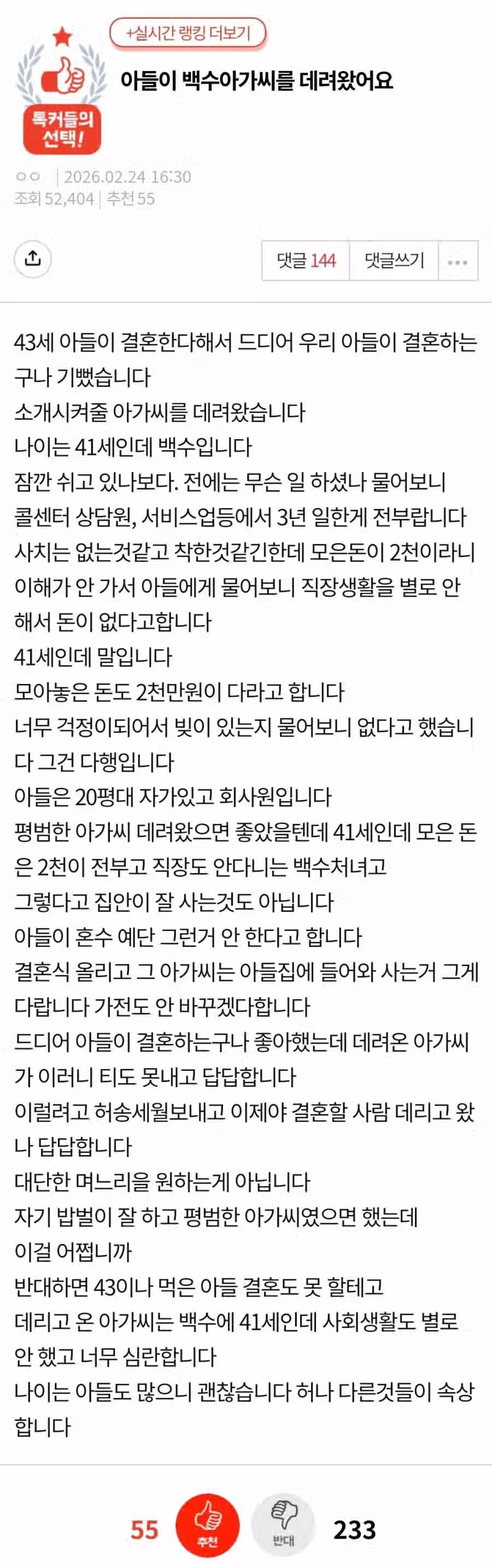 아들이 백수 아가씨를 데려왔어요...