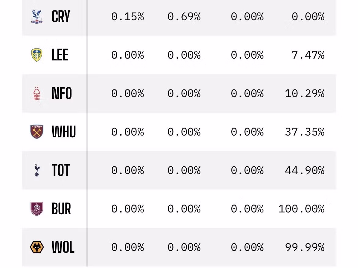 옵타) 실시간 토트넘 강등확률 ㄷㄷㄷㄷ