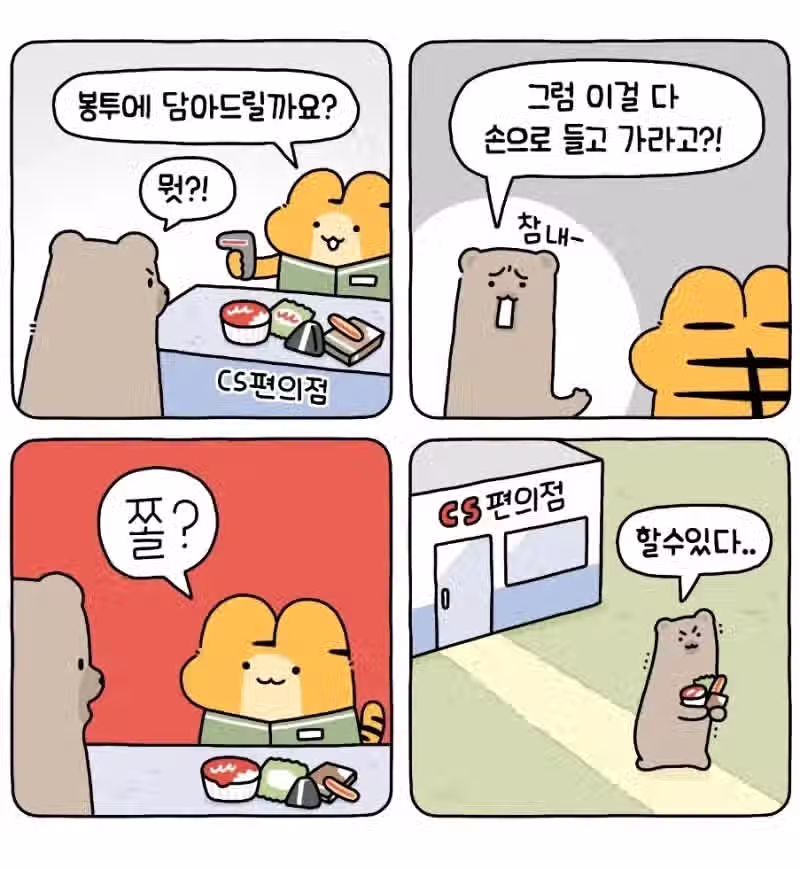 ?? : 봉투를 안주면 이걸 손으로 들고가라는거야?!