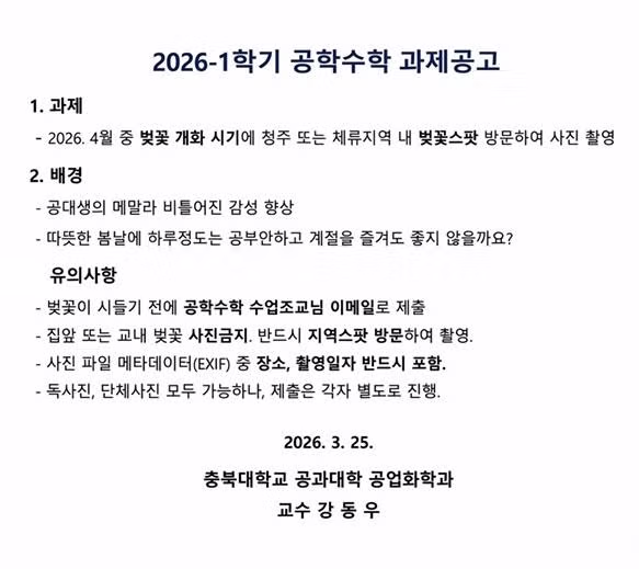 벌써 6년째 “벚꽃 사진 찍어와라”…공대 과제 낸 교수, 왜