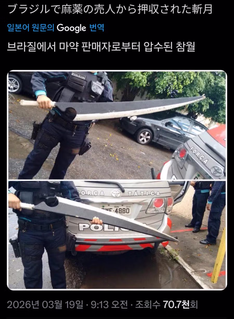체포된 브라질 ㅁㅇ상이 가지고 있던 칼