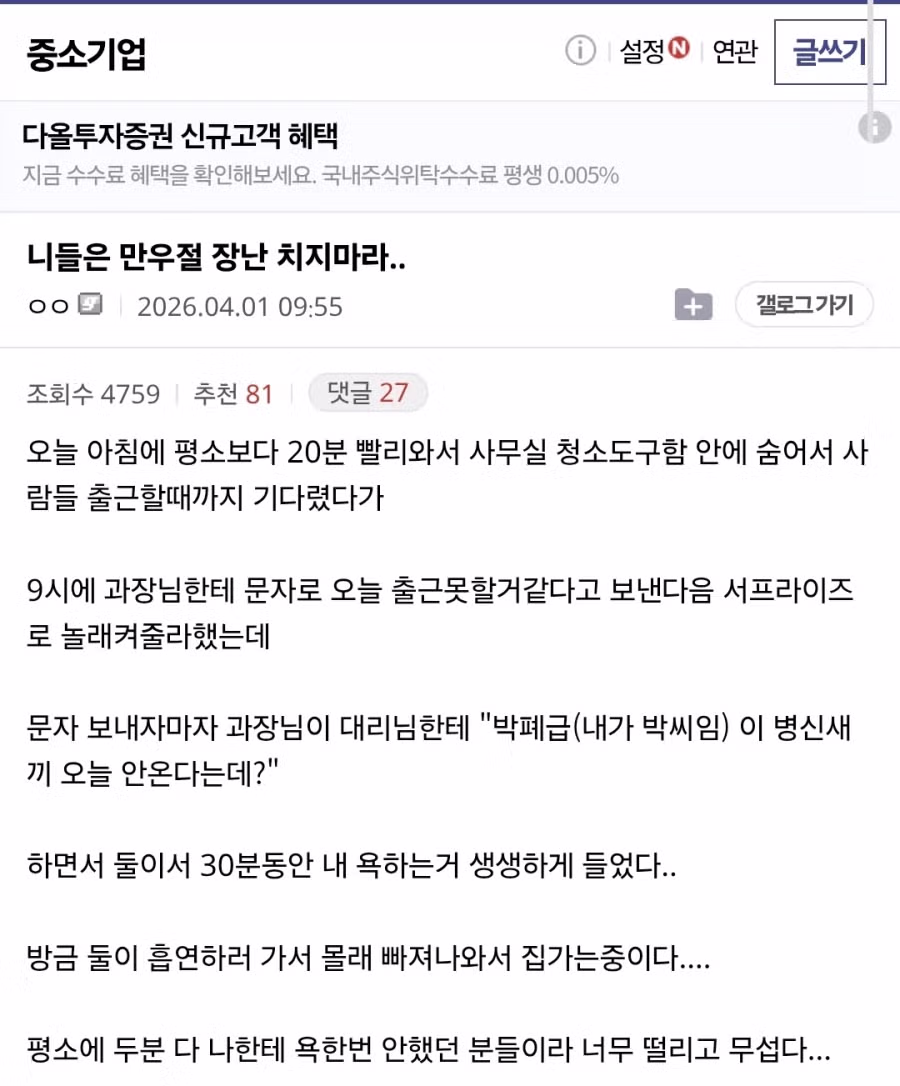 만우절때 장난쳤다가 상처받은 디시인