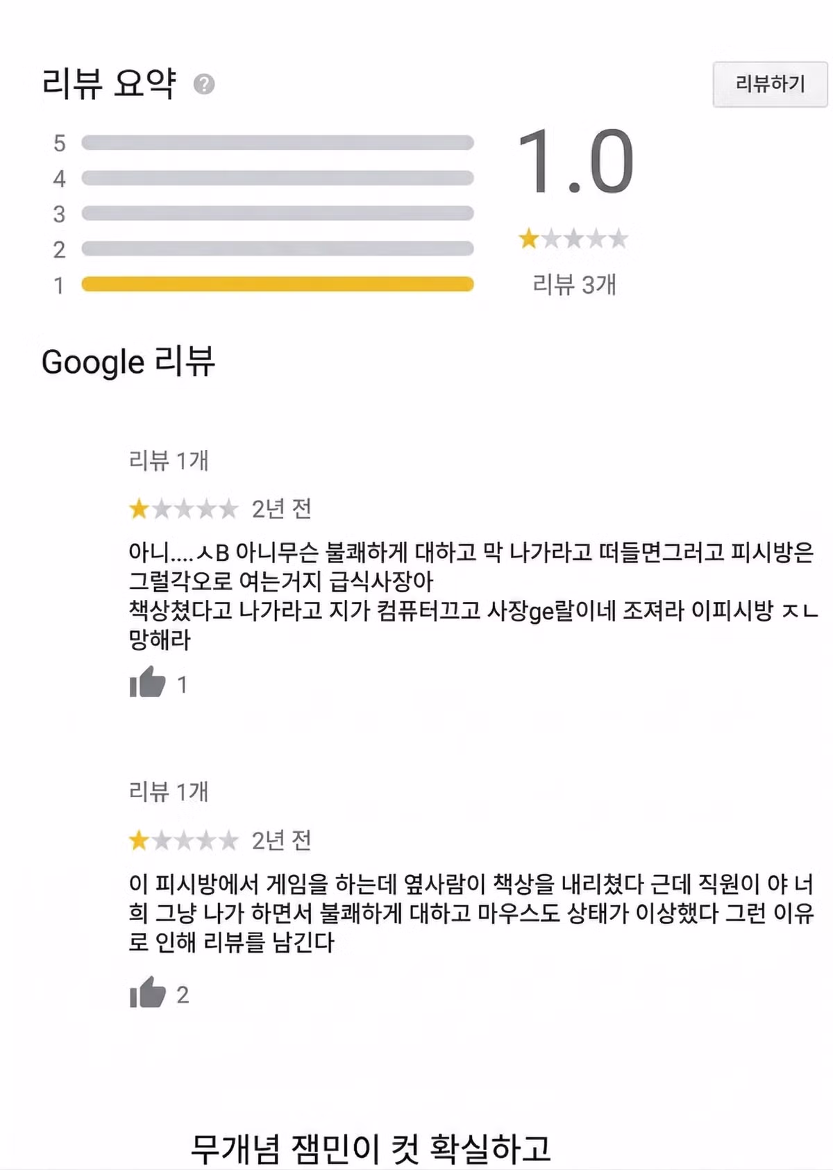 평점 1점이지만 가고 싶은 pc방