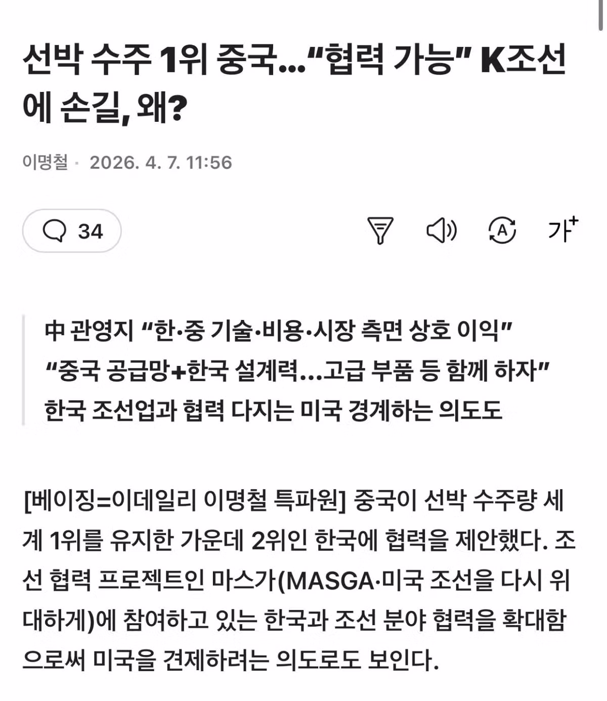 중국이 배 같이 만들자고 함 ㄷㄷㄷ