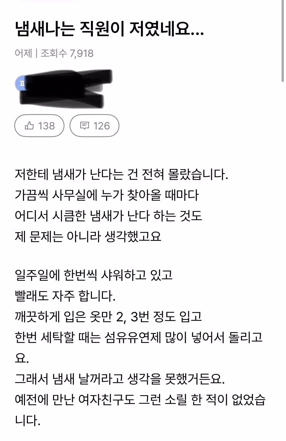 냄새나는 직원이 저였네요