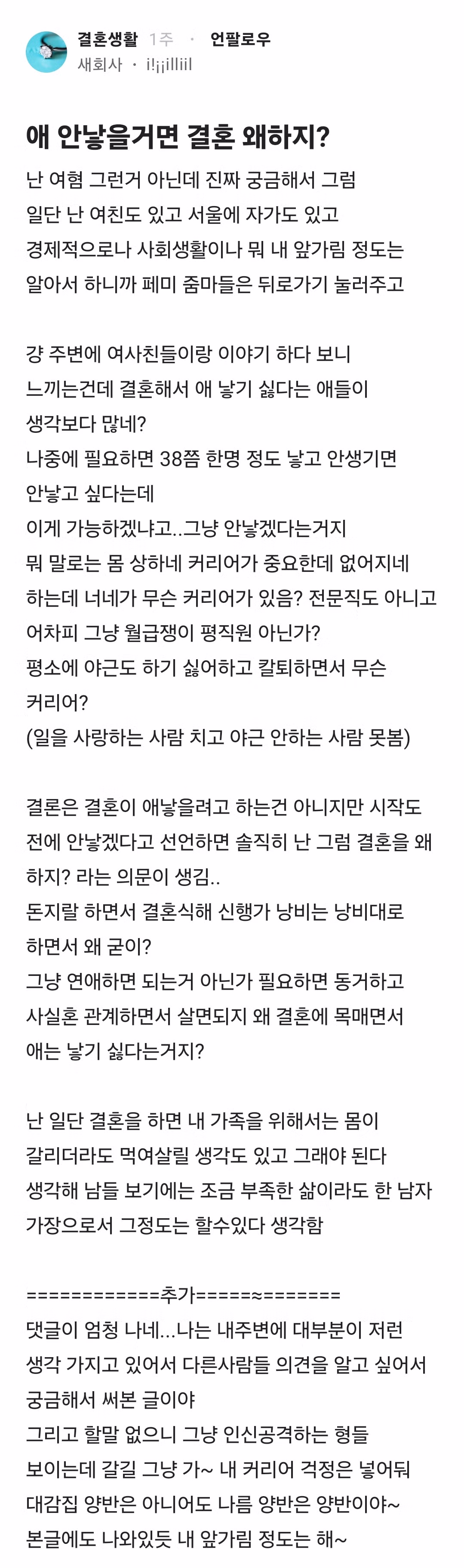 애 안낳을꺼면 결혼왜하냐는 사람