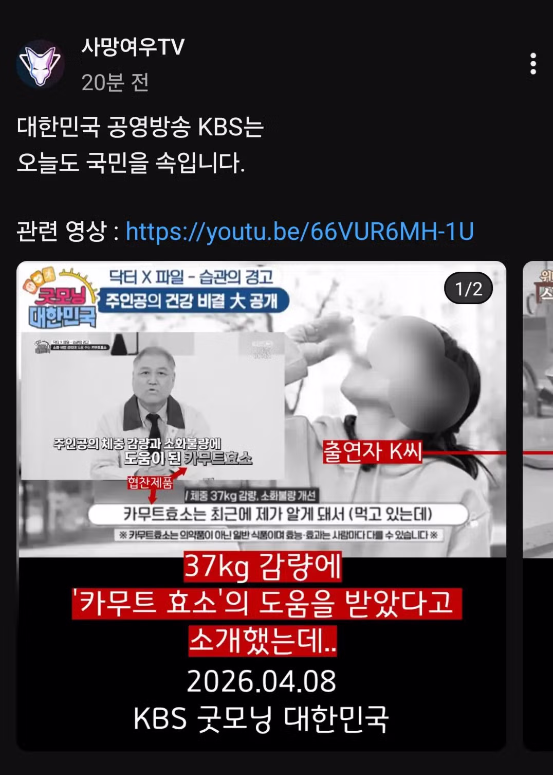 유튜브채널 '사망여우' 방금자 근황 feat. KBS 한국방송