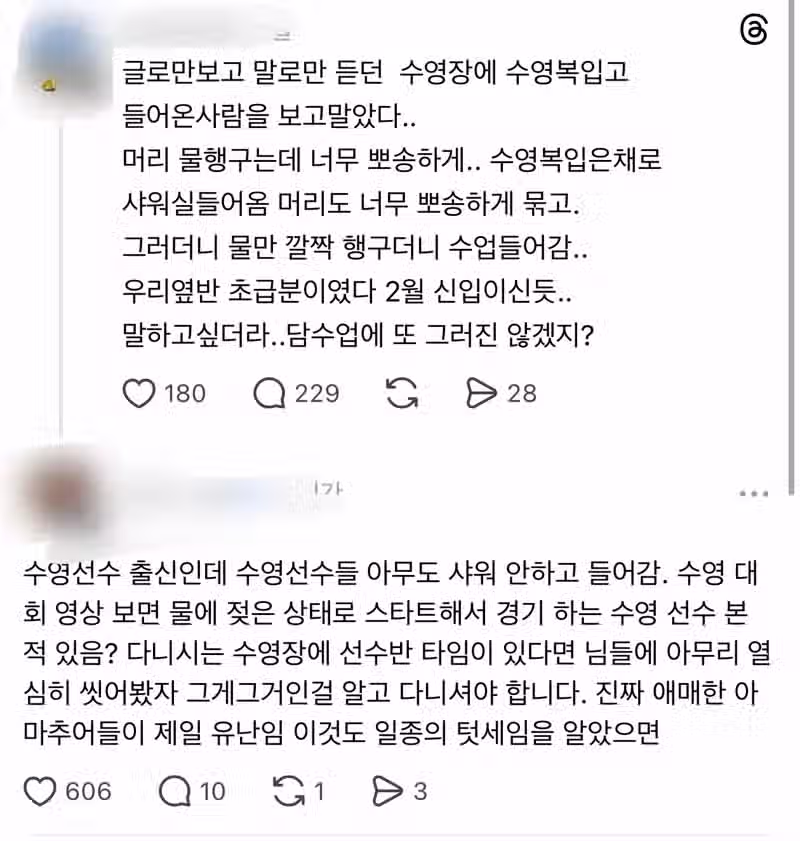 수영장 샤워 논란