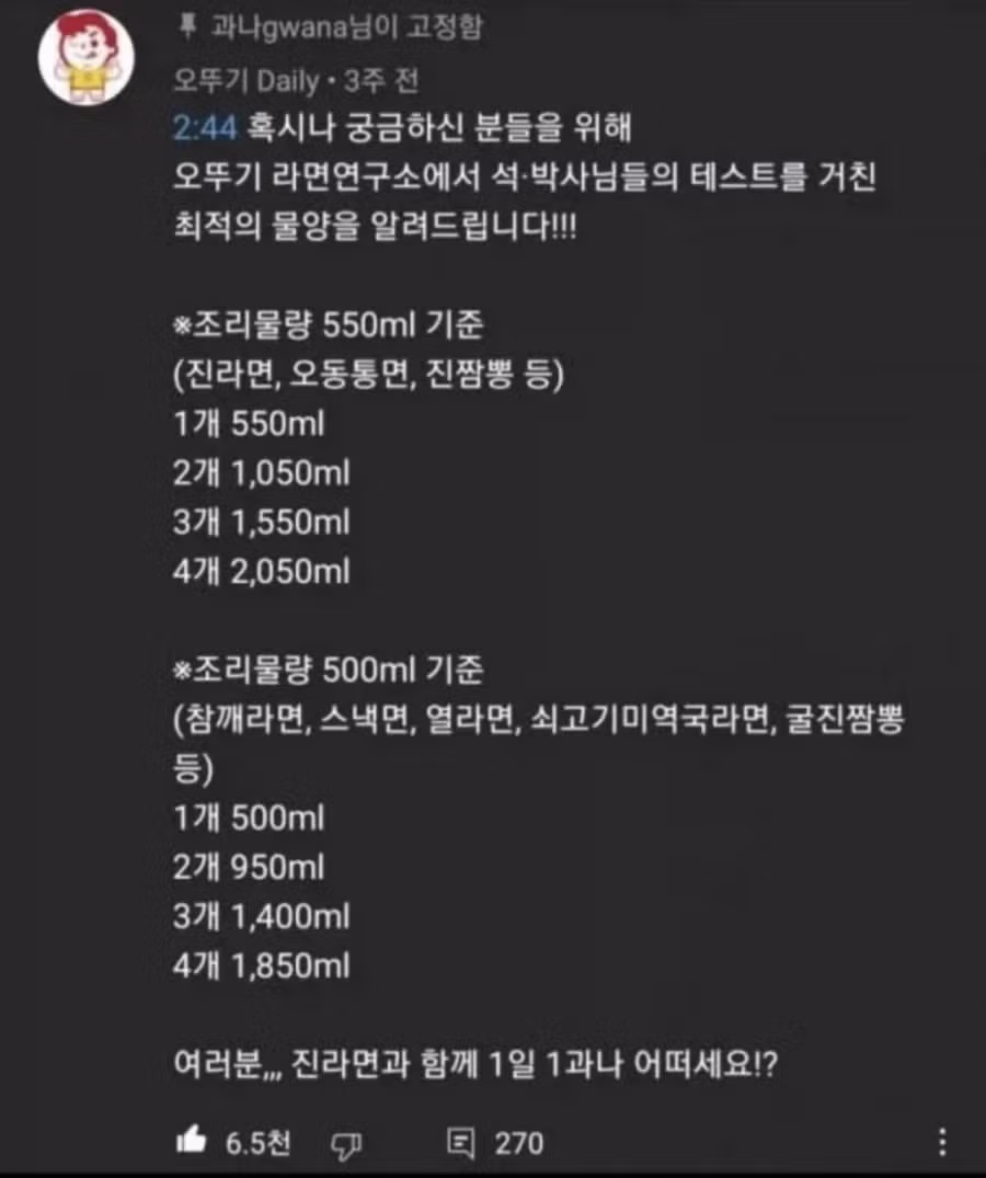 제조사가 말하는 라면 여러 개 끓일 때 물량