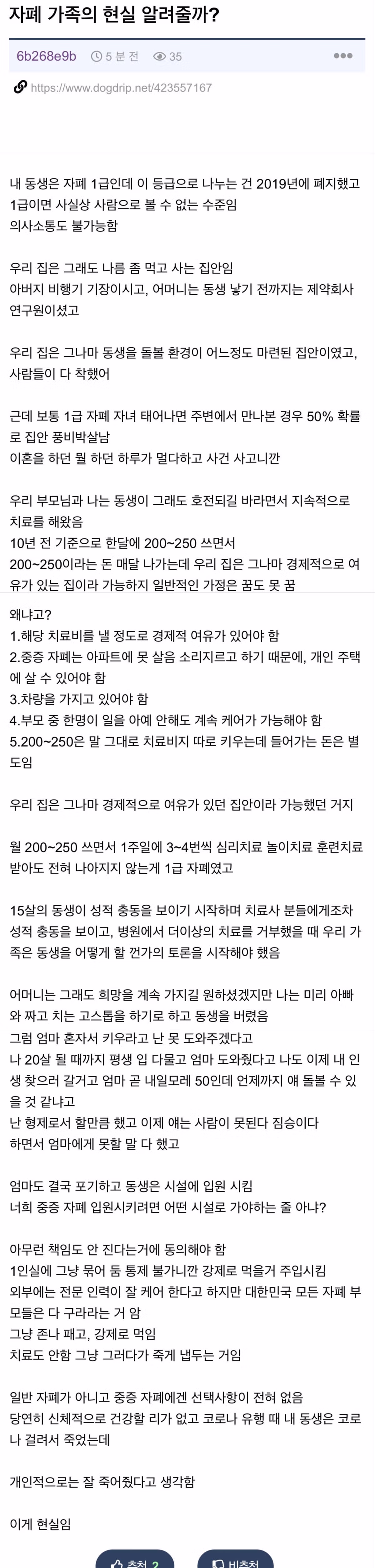 가족중에 중증 자폐 장애인 있을 때 현실.JPG