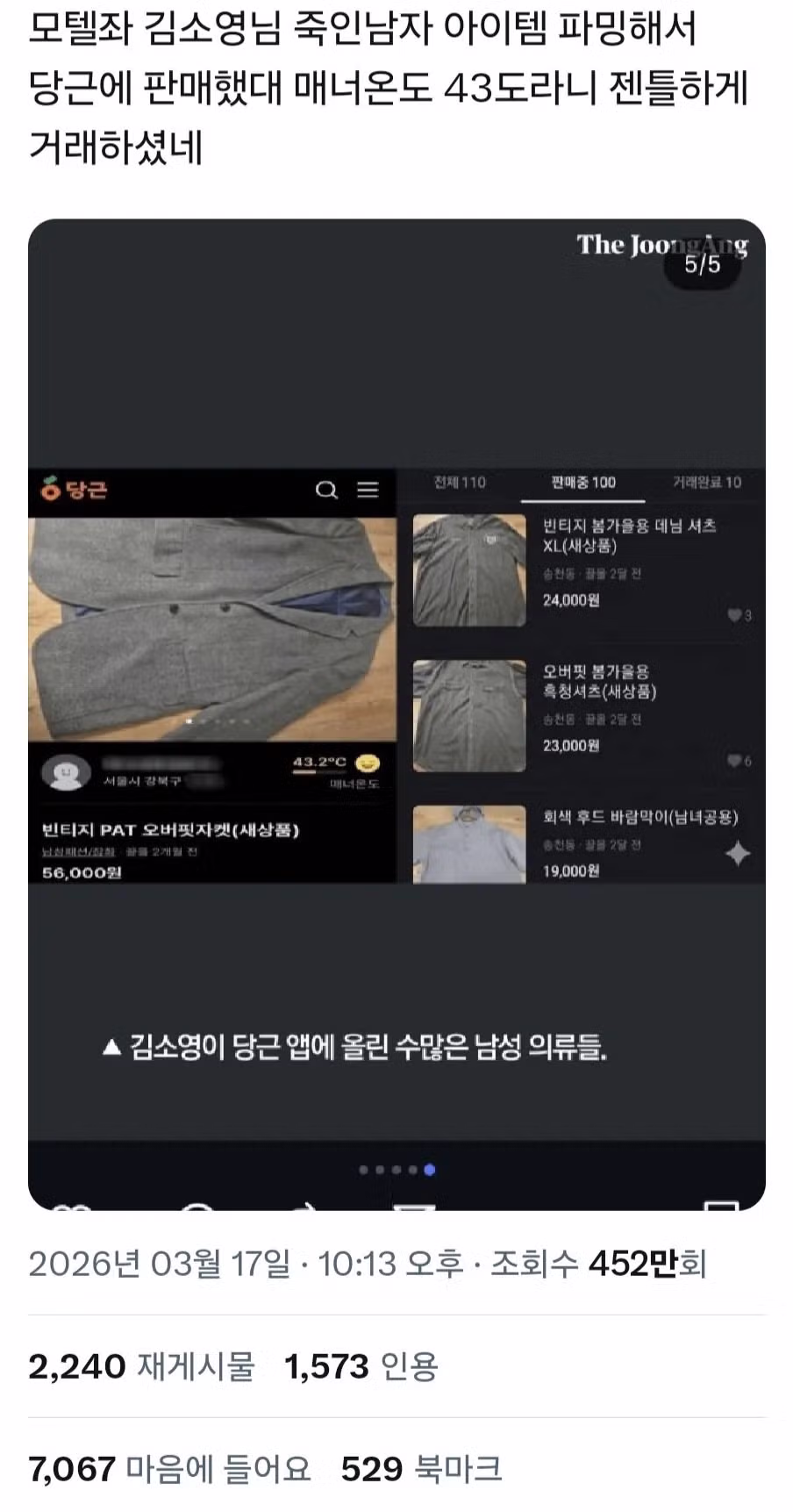 X에서 당근 매너온도로 극찬 중인 연쇄살인마 김소영