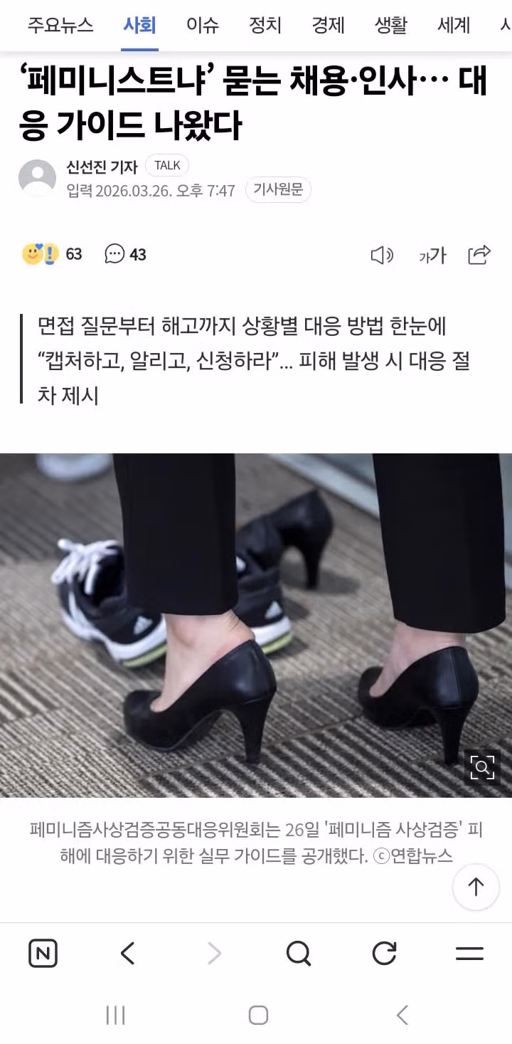 여성단체에서 페미니즘 사상검증 대응 가이드 공개함