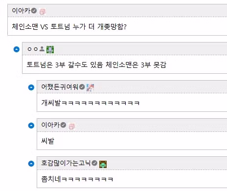"그래서 체인소맨 vs 토트넘 누가 더 개좆망함?"