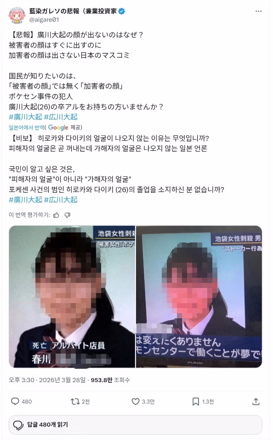 포켓몬센터 살인사건 공중파 "피해자 신상 공개" 로 논란중