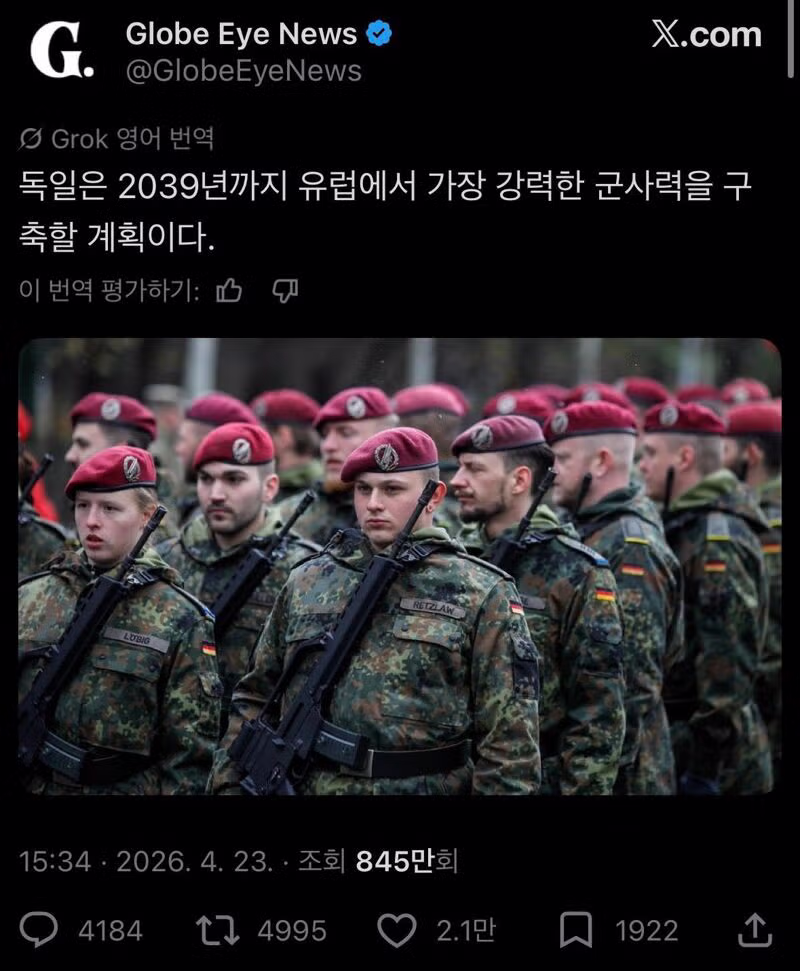 독일은 2039년까지 유럽에서 가장 강력한 군사력을 구축할 계획이다.