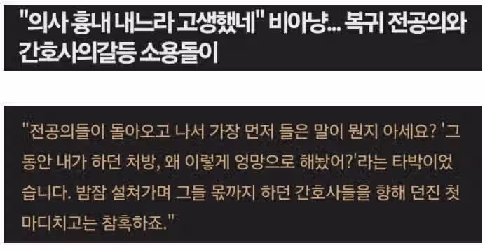 복귀 전공의 인성 진짜....