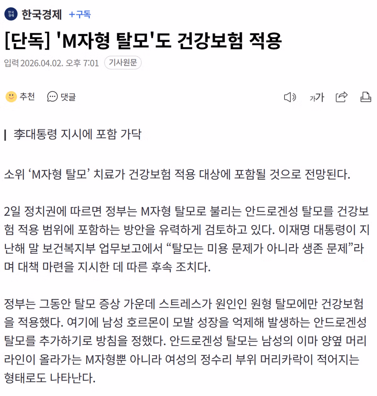 "탈모 치료는 미용 아닌 생존"…건강보험으로 지원