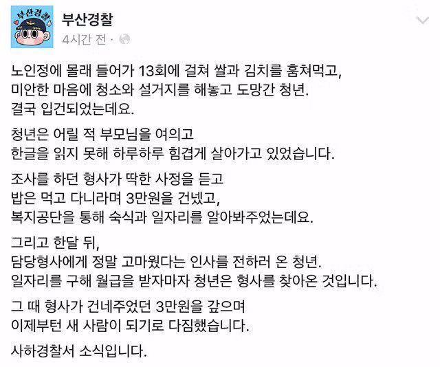 노인정에서 밥 훔쳐 먹은 청년