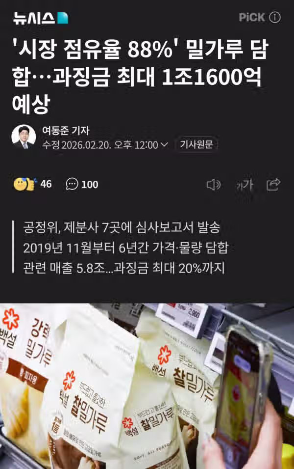 '시장 점유율 88%' 밀가루 담합…과징금 최대 1조1600억 예상