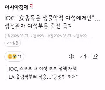 IOC 성전환자 여성부문 종목 출전 금지